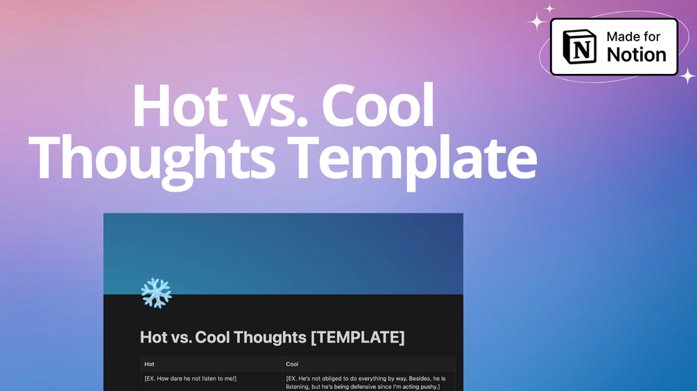 The Hot vs Cool Thoughts Notion Template is a streamlined digital tool inspired by cognitive therapy techniques to help you clearly distinguish, monitor, and reframe your emotional reactions.